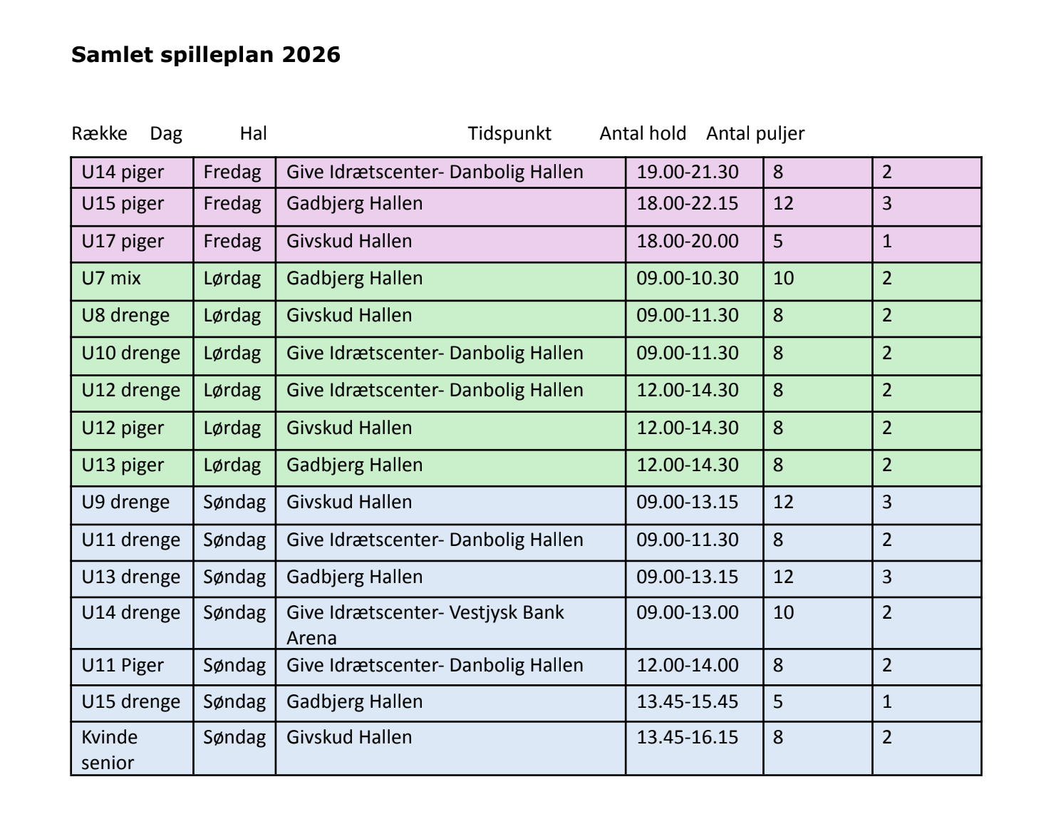Samlet spilleplan 2026